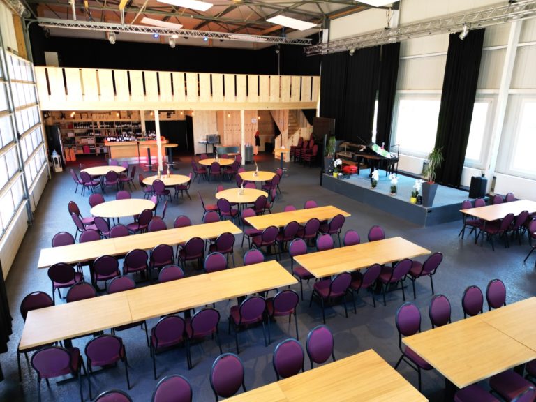 Notre grande salle de 300m², chauffée et entièrement modulable, s’adapte à vos besoins tout au long de l’année. Que vous souhaitiez un aménagement classique avec tables et bar, une configuration événementielle avec scène et podium ou une ambiance festive avec light show et musique, nous personnalisons l’espace pour vous offrir une expérience sur-mesure.