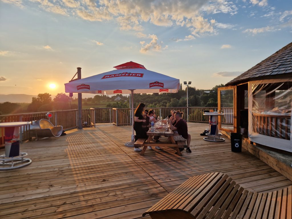 Pour ceux qui préfèrent profiter du panorama, notre rooftop aménagé vous accueille avec chaises longues et coin cosy, parfaits pour se détendre et partager un moment convivial.